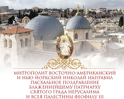 Нью-Йорк: Митрополит Восточно-Американский и Нью-Йоркский Николай направил Пасхальное поздравление Блаженнейшему Патриарху Святого града Иерусалима и всея Палестины Феофилу III