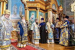 Мне особенно радостно приветствовать всех вас с праздником Благовещения Пресвятой Богородицы в этом величественном и историческом Патриаршем соборе, находясь среди единоверных наследников дела святителя, миссионера и священноисповедника Тихона, Патриарха Московского и всея Руси, – я, прежде всего, выражаю нашу сердечную благодарность за любовь и за поистине братские к нам чувства!