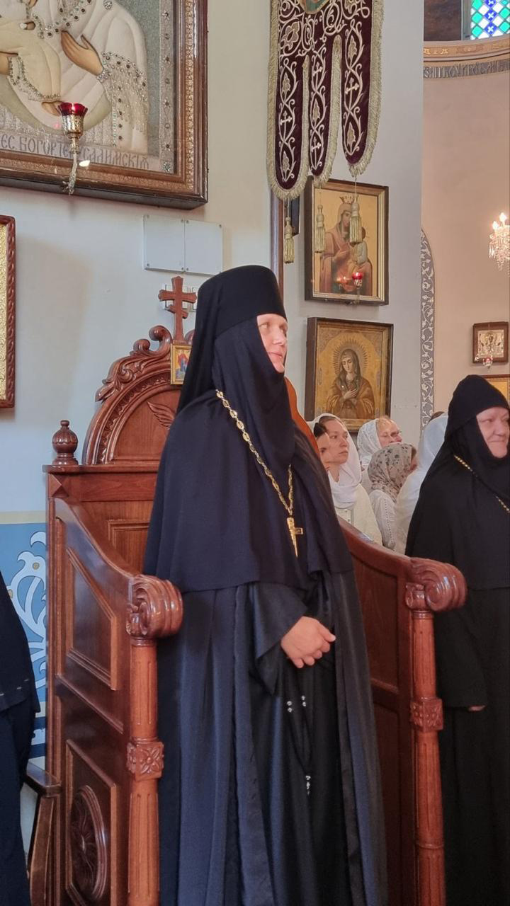 The next day, on the feast day of the Ascension of the Lord, His Eminence, celebrating Divine Liturgy at the Cathedral Church of the Convent on the Mount of Olives, in concelebration with His Eminence Metropolitan Mark of Berlin and Germany, Fr Roman, the mission clergy, and pilgrims in sacred orders, at the appointed time during the service appointed Sister Judith as the abbess, handing her the staff and placing upon her the pectoral cross.