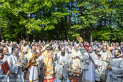 On Sunday, May 25, all-night vigil was served outside the iconostasis, as is appointed on the eve of a consecration. As the sun glistened behind the trees surrounding the countryside church early Monday morning, the First Hierarch was greeted at the main doors of the church by the parish warden and entered the temple.