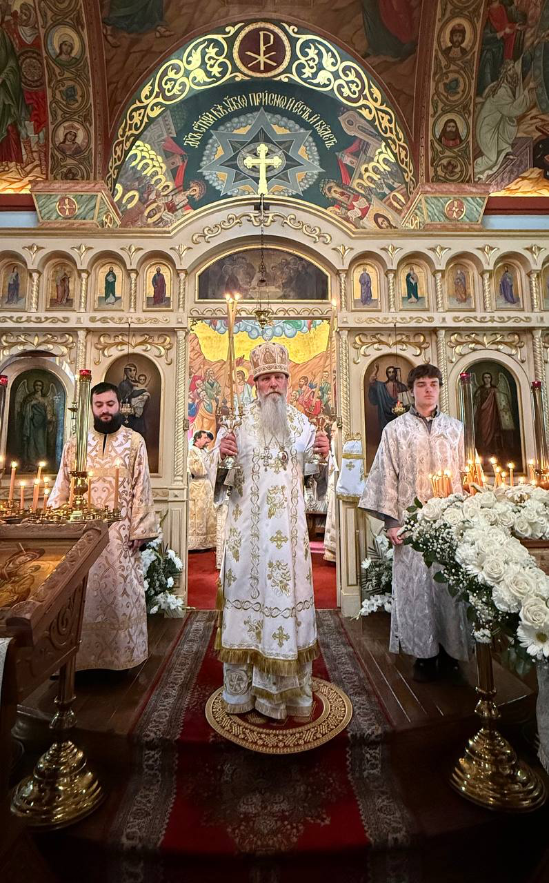 During the minor entrance, by decision of the Synod of Bishops of the Russian Orthodox Church Outside of Russia, Vladyka Kyrill bestowed a mitre upon the rector of the parish, Archpriest Pavel Volmensky, for his exceptionally diligent pastoral service over 40 years.
