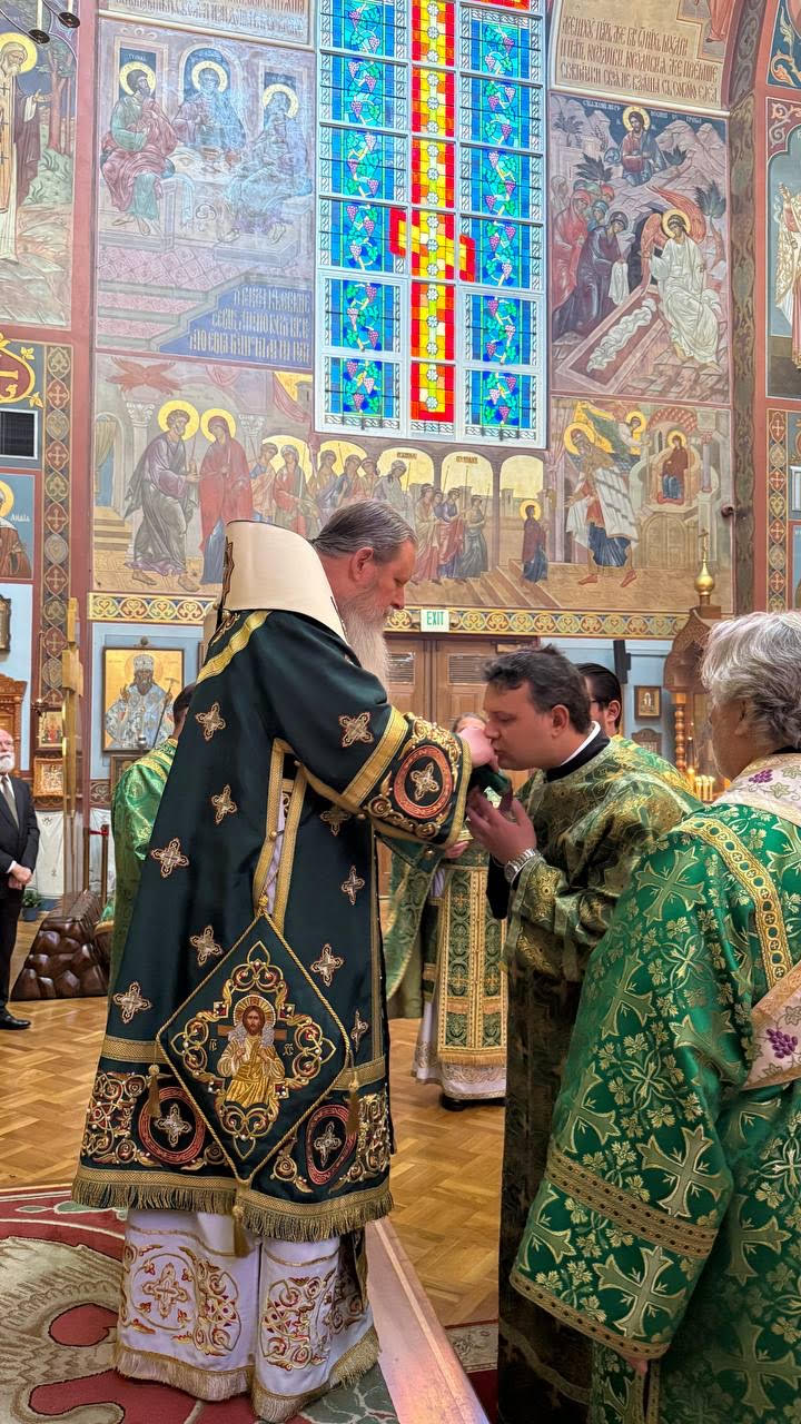 On Sunday, June 8, 2025, the feast of the Holy Trinity, His Eminence Archbishop Kyrill of San Francisco and Western America, officiated at Divine Liturgy at the Joy of All Who Sorrow Cathedral in San Francisco, CA. His Eminence was joined by the clergy of the cathedral. The hymns were performed by the cathedral choir under the direction of renowned director Vladimir Krassovsky. At the beginning of the service, Archbishop Kyrill performed the ordination of the reader Ilya Kulish to the subdeacon.