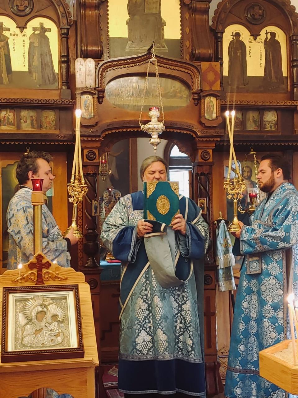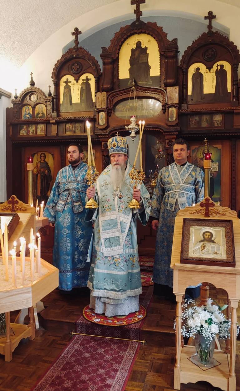 Hieromonk Peter (Karakozov) delivered a sermon, calling the believers to a living faith and trust in God's Providence. After Liturgy, a procession took place around the temple, in which all present participated with reverence. At the end of the celebration, Archbishop Kyrill addressed the congregation with a pastoral message and warmly congratulated all parishioners on the feast day.