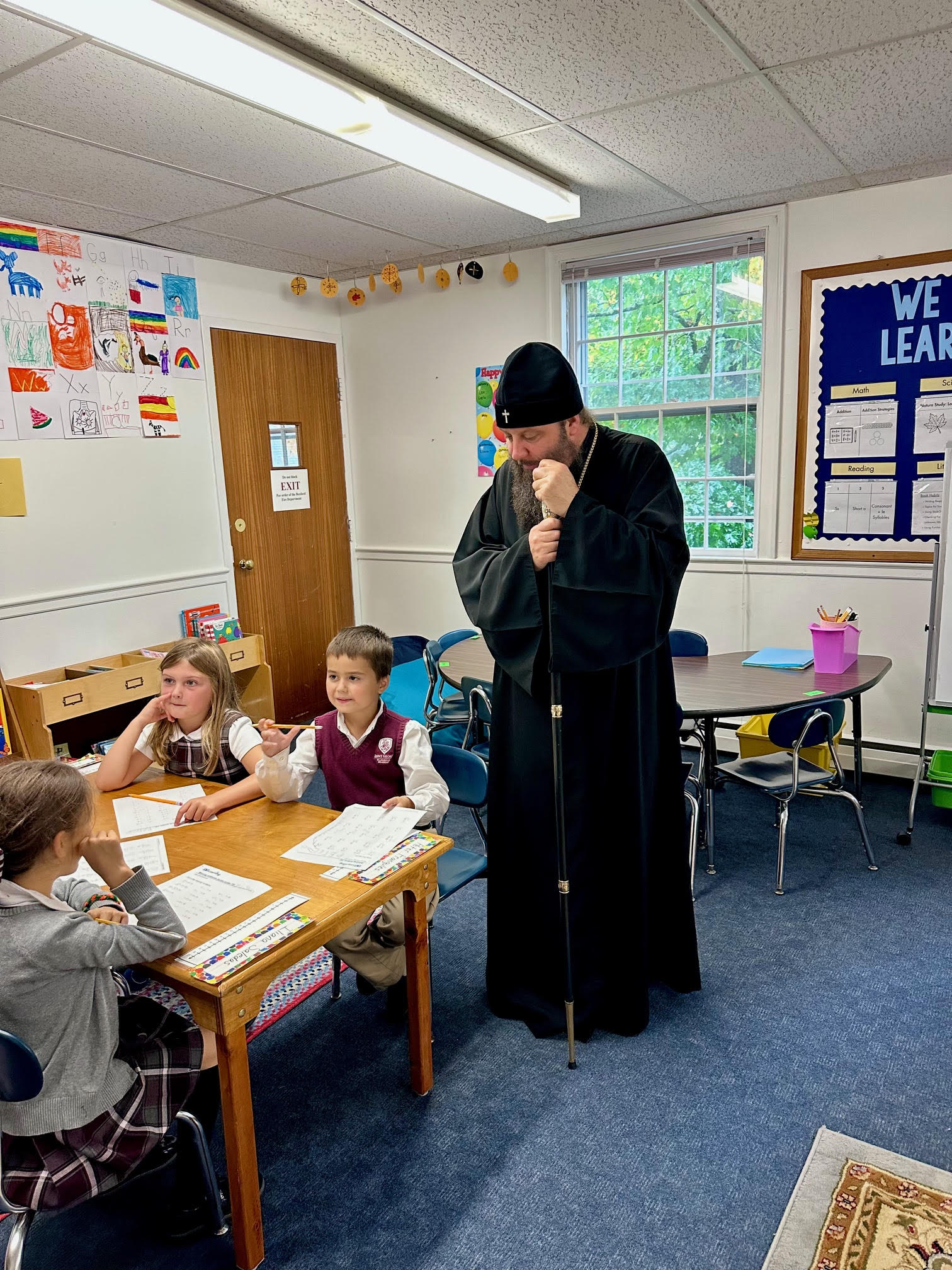 On Thursday, September 25, on the Afterfeast of the Nativity of the Most Holy Theotokos, Metropolitan Nicholas, accompanying the Miracle-working Kursk-Root Icon of the Mother of God, visited St George Classical Academy in Ipswich, MA. There His Eminence met with the director, Juliana Schneider, students and pupils, toured all the facilities, and learned about the life of the school. On the same day, His Eminence visited Mt Auburn Cemetery in Cambridge, MA, where he served a requiem at the grave of the late benefactor of the Synod of Bishops and the Athonite St Elias Skete, Sergei Semenenko, who in the late 1950s generously donated the Synodal Residence in New York City to the Russian Orthodox Church Abroad.