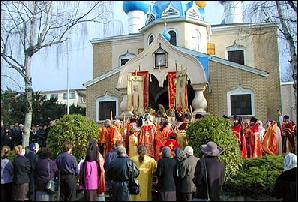 Cathedral, with two clergy choirs (one singing in Slavonic