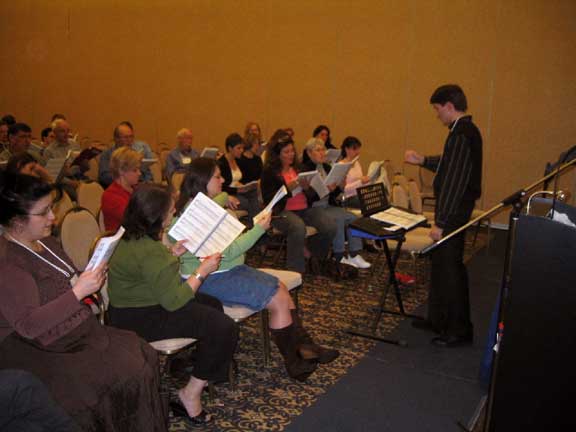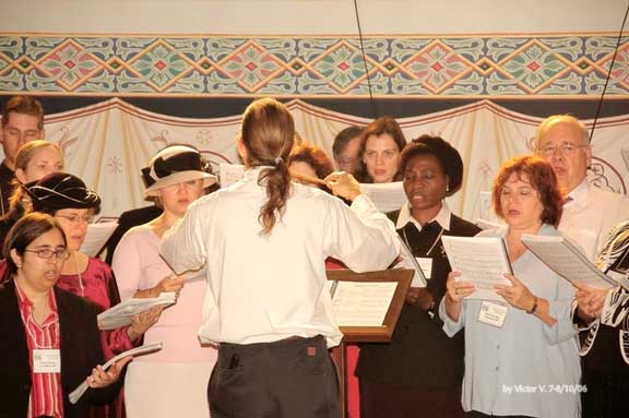 Отель был выбран весьма удачно; залы, где проходили спевки, были просторны и отличались хорошей акустикой, еда не оставляла желать лучшего, а плавательный бассейн и горячие ванны под огромным стеклянным куполом предоставили всем желающим возможность отдохнуть и свести на нет усталость, неизбежную после 11-часового рабочего дня, принятого на съезде.