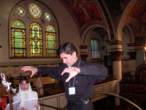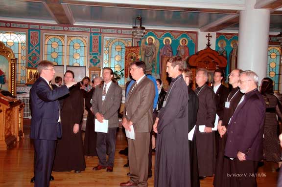 Частично пение на службах было антифонным: пело два хора по пятьдесят певчих каждый, - при том, что кульминацией стало пение всего стоголосого певческого собрания, потрясшее и слух, и сердца всех находящихся в храме. Управляли хором Петр Фекула, Владимир Красовский, Георгий Скок, Олег Мартынов и Михаил Гриц. На отпусте Преосвященный Гавриил обратился со словом, в котором подчеркнул значение подобных съездов для жизни Церкви.