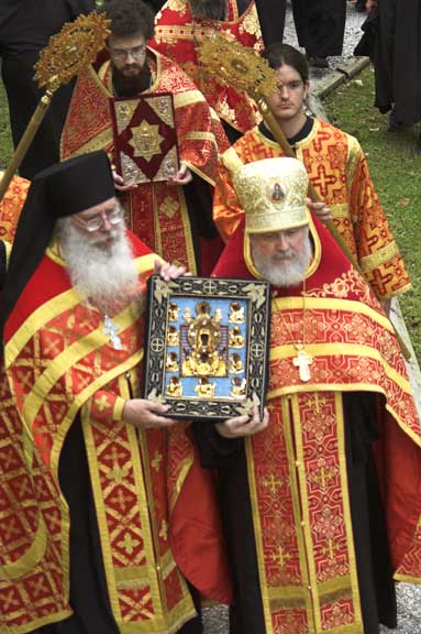 ПОДВОРЬЕ СВЯТО-ТРОИЦКОГО МОНАСТЫРЯ В ДЖОРДАНВИЛЛЕ: 6 октября 2006 г. Первоиерарх Русской Зарубежной Церкви совершил Божественную литургию на Кресто-Воздвиженском подворье Свято-Троицкого монастыря