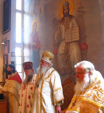 На следующий день Высокопреосвященнейший Владыка совершил Божественную литургию в кафедральном Радосте-Скорбященском соборе в г. Сан-Франциско, а накануне – всенощное бдение, в сослужении архиепископа Сан-Францисского и Западно-Американского Кирилла и епископа Кливлендского Петра, соборного духовенства и гостей в священном сане. В тот же день вечером, по случаю праздника перенесения мощей святителя Николая в Бари, Его Высокопреосвященство возглавил всенощное бдение в храме всех святых в Земле Российской просиявших в г. Бурлингейме, шт. Калифорния. На следующий день Высокопреосвященнейший Владыка возглавил здесь Божественную литургию в сослужении епископа Кливлендского Петра, настоятеля храма протоиерея Стефана Павленко, протоиерея Петра Перекрестова и приходского клира. Интересно отметить, что храм в г. Бурлинейме некогда являлся подворьем Блаженнейшего Митрополита Анастасия, скончавшегося в день праздника перенесения мощей святителя Николая 41 год тому назад.