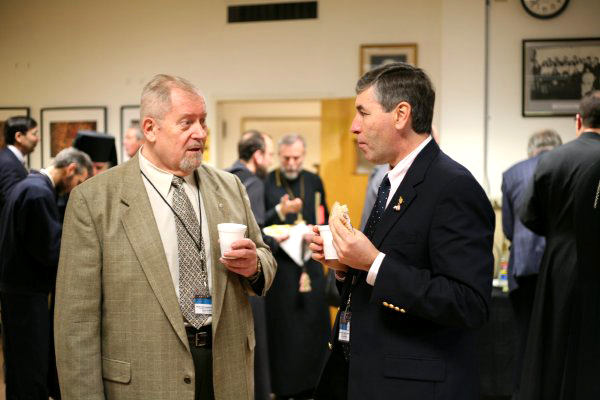 После живого обмена мнениями по поводу первого сообщения митрополита Амфилохия, высокий гость перешел к следующей теме – об отношении Сербской Церкви к экуменизму. Докладчик сказал, что в 1966 г. Сербская Православная Церковь стала последней из Поместных Церквей, ставшей членом Всемирного Совета Церквей. В 1997 году епископ Рашко-Призренский Артемий выступил с докладом, в котором рекомендовал Сербской Церкви выйти из ВСЦ на том основании, что эта организация все меньше интересуется межхристианским диалогом и все больше исповедует синкретическую идеологию. Сербская Церковь пока остается во ВСЦ, чтобы не потерять возможность вести диалог с внешним миром на благо сербского народа.