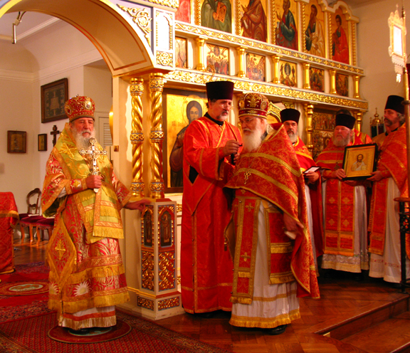 В праздник Рождества Иоанна Предтечи, в день архиерейской хиротонии своего викария, Высокопреосвященнейший Митрополит Лавр возглавил Божественную литургию в Знаменском кафедральном соборе при Архиерейском Синоде в г. Нью-Йорке в сослужении епископа Манхеттенского Гавриила и 33 клириков. По окончании Божественной литургии и благодарственного молебна Его Высокопреосвященство поздравил епископа Гавриила с десятилетием архипастырского служения и пожелал Его Преосвященству помощи Божией в несении креста архиерейского служения. Затем последовал прием, на котором было произнесено много теплых приветствий и преподнесены памятные подарки. Ниже предлагаем вниманию читателей снимки этого торжества.