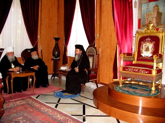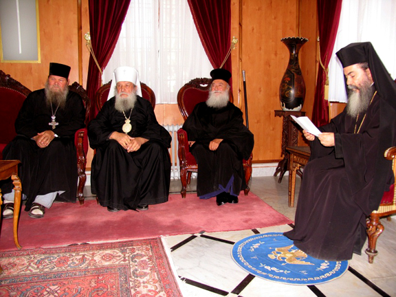Патриархом Феофилом в здании Иерусалимской Патриархии. Во встрече приняли