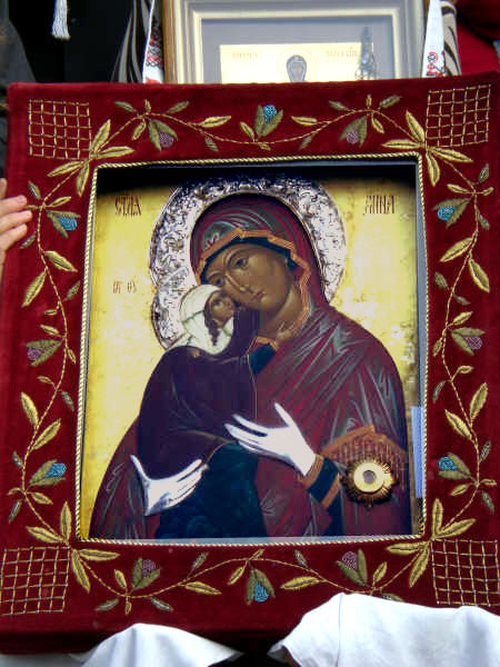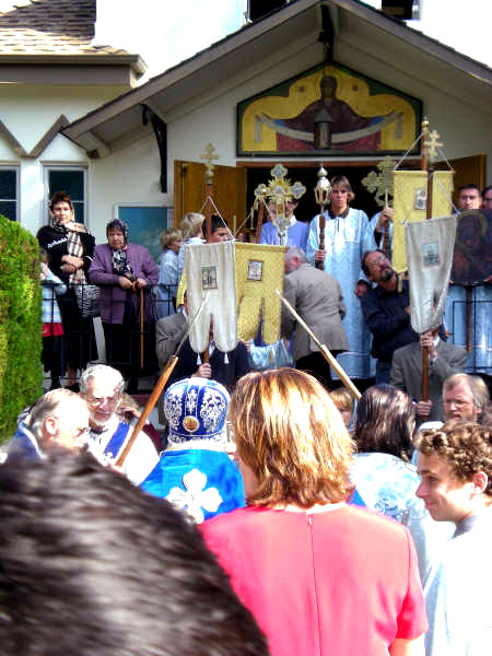 В Пало-Алто богослужения возглавил архимандрит Афанасий (Мастальский), привезший на торжество мироточивую икону святой праведной Анны: