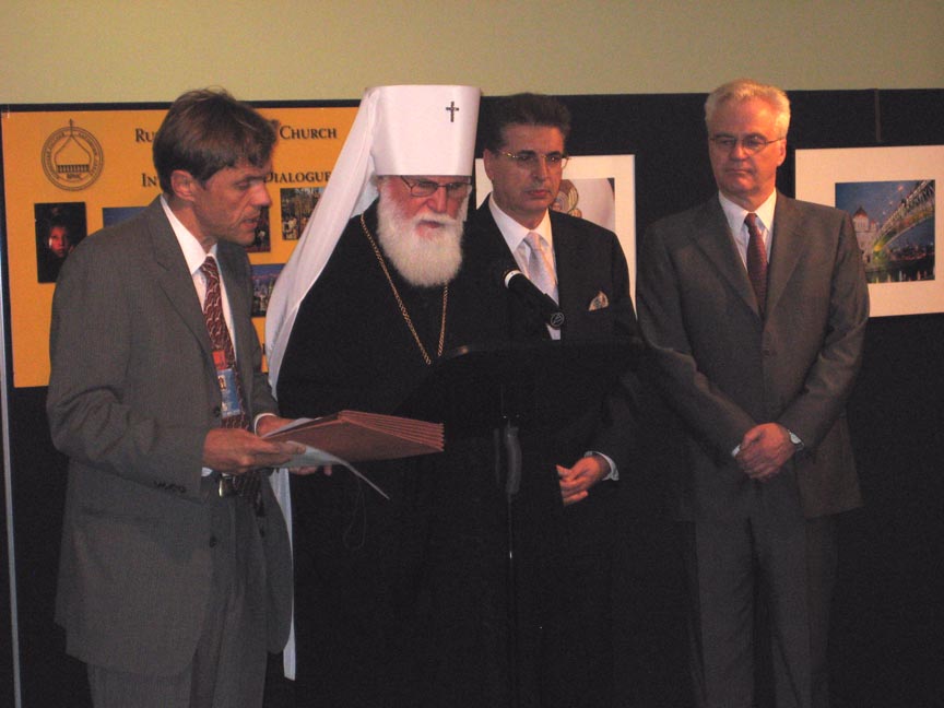 Фоторепортаж о посещении епископом Манхеттенским Гавриилом и сопровождавшими его лицами фотовыставки "Русская Православная Церковь и межрелигиозный диалог" в штаб-квартире ООН