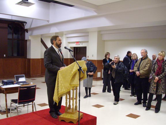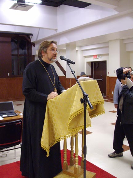«Пожар разрушил не только здание нашего храма. Он разобщил наш приход. В его пламени как бы ослабли и разошлись скреплявшие нас связи. И мы по сей день ощущаем этот разрыв, - сказал в своем слове и.д. настоятеля протоиерей Георгий Лагодич. - Но постепенно, с непрестанной помощью Божией, по молитвам святителя Николая, положение начало исправляться. Дела пошли на лад, начиная с весны 2002, когда наш Первоиерарх, наш дорогой Владыка Лавр, посетил Монреаль, возглавив заседание обновленного Епархиального Совета, проходившее в этих стенах, тогда еще несущих на себе следы огня - и благословил нас, не оглядываясь на прошедшее, с новыми силами приступить к восстановлению Николаевского кафедрального собора. С тех пор мы постоянно чувствуем поддержку наших архиереев, - Высокопреосвященнейшего Митрополита Лавра и Преосвященнейшего Епископа Гавриила. Мы все помним и о той немалой помощи, которую недавно оказал нам Архиерейский Синод, предоставив в самый критический момент остро необходимый нам заем. И все мы хорошо знаем, что это стало возможным исключительно благодаря настойчивой поддержке Высокопреосвященнейшего Владыки Лавра и Преосвященнейшего Владыки Гавриила.»