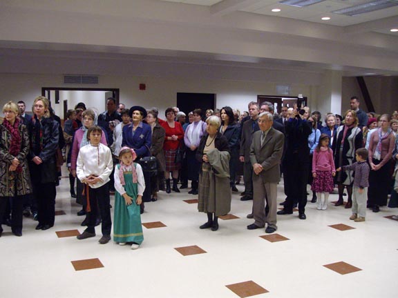 После молебна пред иконой святителя Николая Мирликийского, совершенного соборным клиром: и.д. настоятеля протоиереем Георгием Лагодичем и иереем Михаилом Метни, все отправились к «виновнику торжества» - т.е. в нижний этаж собора. Здесь, вместо обгоревших руин, которые подпирали временно установленные железные балки, - а именно так еще недавно выглядела вся нижняя часть собора, - прибывшие на праздник многочисленные гости Николаевского прихода, увидели изящно обустроенный зал, сверкающие белизной помещения для церковно-приходской школы имени А.С. Пушкина и вызвавшую всеобщее восхищение современную кухню, оборудованную всем необходимым, облицованную нарядным кафелем: сестричество Николаевского собора издавна славится на всю Канадскую Русь своими кулинарными изделиями, и, прежде всего, русскими пирожками. Долгие годы после пожара сестрам приходилось ютиться в тесной, душной комнатушке, но ни на один день соборное сестричество не прекращало своих трудов. Во многом благодаря их жертвенным стараниям удалось, вопреки всем трудностям, продолжить восстановление храма. Действительно, основная часть поистине огромных средств, которые потребовались приходу, дабы их намоленный храм поистине восстал их пепла, была пожертвована самими прихожанами.