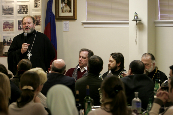 Затем в приходском доме состоялась общая трапеза, после котор о й члены делегации ответили на вопросы прихожан о церковной жизни в России и о проблемах межправославного диалога.