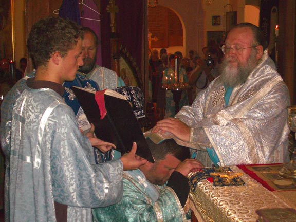 В день Сретения Господня архиепископ Сиднейский и Австралийско-Новозеландский Иларион, Первый Заместитель Председателя Архиерейского Синода, совершил Божественную литургию в своей крестовой церкви, освященной в честь всех святых в Земле Российской просиявших, в сослужении протоиереев Михаила Бойкова, Михаила Ли и иерея Иакова Карлса, при протодиаконе Германе Полоротове и диаконе Александре Котлярове. Несмотря на то, что в этом году праздник выпал в будний день, молящихся в храме было очень много. Во время чтения шестого часа архиепископ Иларион поставил во чтецы и иподиаконы Мартина Неф – щвейцарца, принявшего Православие одиннадцать лет тому назад. В положенное время за Божественной литургией Его Высокопреосвященство рукоположил во диаконы иподиакона Константина Николаевича Мошегова, известного в Сиднее глазного доктора-специалиста. И тут следует заметить, что для семейств Мошеговых и Неф совершенные рукоположения имеют особое значение, так как диакон Константин и иподиакон Мартин женаты на двух сестрах – Наталии и Татьяне (урожденных Ивановские).
