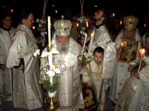 Прослушайте отрывки пасхальных богослужений в Свято-Троицком монастыре здесь.
