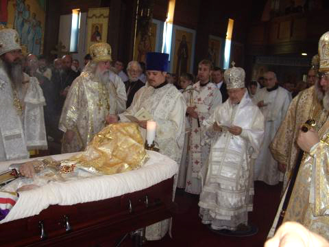 По благословению Высокопреосвященнейшего Владыки Лавра, на отпевании и погребении архиепископа Кирилла, совершенном в Питсбурге, присутствовали священник Серафим Ган и протодиакон Виктор Лохматов.