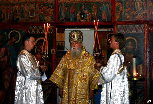 Утром этого дня Преосвященнейший Михаил прибыл из Сан-Франциско, из Храма Всех Скорбящих Радости, где находится рака с мощами Святителя, и привез частичку мощей для укрепления на иконе, что и было совершено сразу по приезде.