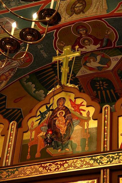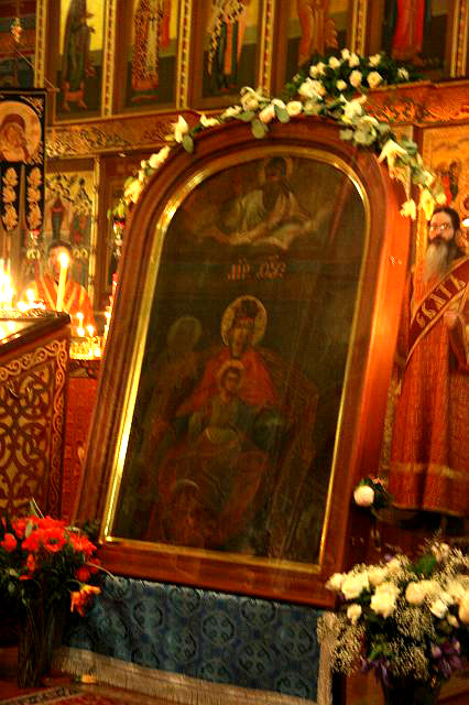 Эта возможность представилась нам на следующий день. Утром 10 сентября частным рейсом из Чикаго прибыла в Вашингтон дорогая сердцу всякого православного христианина святыня – икона Божией Матери «Державная». Чудотворную икону сопровождали Высокопреосвященнейший Исидор, митрополит Екатеринодарский и Кубанский, Преосвященнейший Евгений, архиепископ Верейский, ректор Московской Духовной Академии и семинарии, наместник московского Сретенского монастыря архимандрит Тихон (Шевкунов) и хор этой святой обители. Большой образ сразу был доставлен в Иоанно-Предтеченский собор, где святыня была встречена духовенством и верующими, и поставлена на специально для нее сооруженный аналой. Икона оставалась в храме с 10 по 13 сентября, где бесконечным потоком к ней притекали верующие многих православных приходов в районе большого Вашингтона. Явление иконы в нашем храме воспринималось прихожанами, как особая милость Божия, как событие, которое никто из нас раньше не мог себе представить.