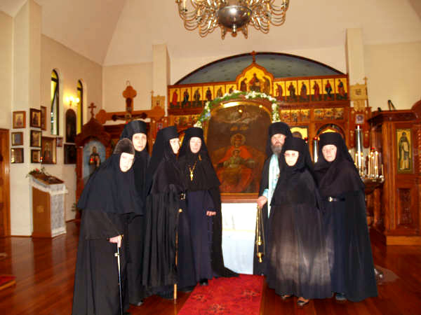 После трапезы, Игумения Мария (Богородице Казанская обитель в г. Кентлине), монахини и их помощники увезли Державную Икону на акафист в женский монастырь, который находится недалеко от Сиднея. Неожиданность прибытия Иконы в монастырь не могла остановить приток молящихся. На монастырь почила благодать Божия и благоволения Самой Пречистой Девы Марии.