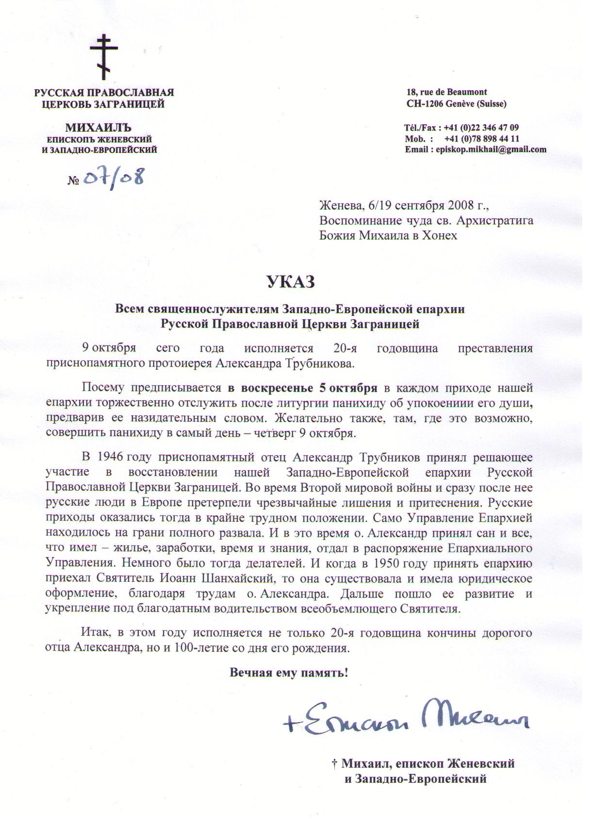 Официальная страница Архиерейского Синода Русской Православной Церкви заграницей.