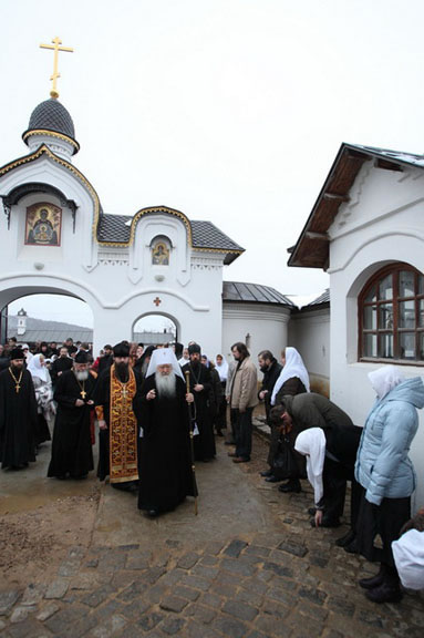 «Хвалите отроцы Господа, хвалите имя Господне!» — возгласил Владыка Ювеналий и с многократным пением стихов Псалмопевца «Буди имя Господне благословенно от ныне и до века, от восток солнца и до запад хвально имя Господне», духовенство, клирошане и богомольцы последовали за своим архипастырем в храм.