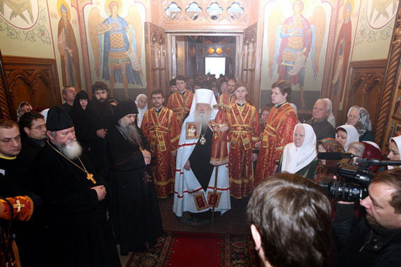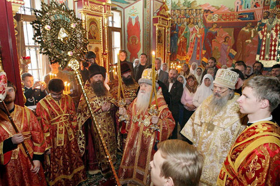 Без четверти девять колокольный звон возвестил о прибытии в Михайловскую Слободу дорогого сердцам единоверцев архипастыря — митрополита Ювеналия. Теплая встреча у святых врат, слова христианской любви святителей Ювеналия и Иоанна, благословение священнослужителей — эти мимолетные мгновения как будто унесли прочь от суеты мира всех собравшихся на праздничное богослужение.