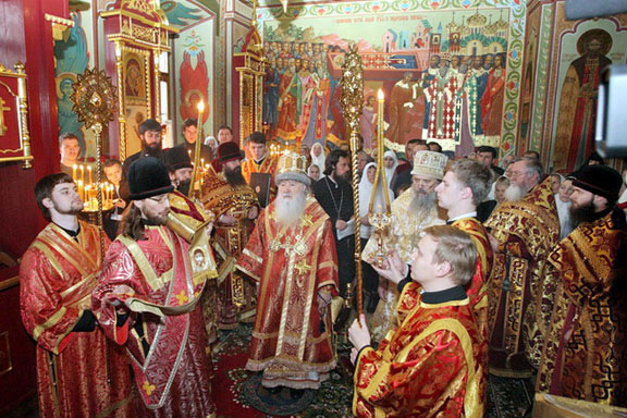 Служение началось в три часа пополудни и продолжалось до половины девятого вечера. Пред взором богомольцев, наполнивших вечером храм Архангела Михаила, предстали незабываемые моменты торжественного исхождения епископа Иоанна в окружении священнослужителей на литию, а также полиелей.