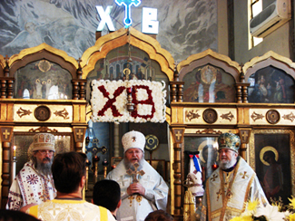 Открывая  утренние торжества, прибывший для  участия в них Первоиерарх Русской Православной Зарубежной Церкви митрополит Восточно-Американский и Нью-Йоркский Иларион, совместно с митрополитом Аргентинским и Южно-Американским Платоном и управляющим приходами Русской Православной Зарубежной Церкви в Южной Америке епископом Каракасским и Южно-Американским Иоанном, отслужили в Соборе божественную литургию. Архиереям сослужили четыре священника, один протодиакон и два диакона. Пел мужской квартет Синодального хора, специально прибывший на эти торжества из Москвы.