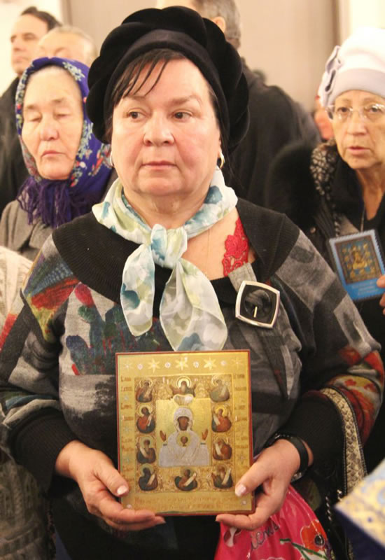 Встреча делегации и древнего чудотворного образа , посещавшего перед этим православные приходы в Японии , состоялась накануне вечером в Международном аэропорту Владивосток , в центральном зале прилета. По согласованию с администрацией аэропорта, все желающие – в том числе, встречающие и пассажиры, проходящие регистрацию – смогли приложиться к святому образу, получить благословение перед вылетом. Всего в тот вечер участниками встречи и молебна перед святым образом стали более 350 человек.