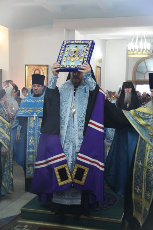 Перед чудотворным образом Божией Матери был совершен молебен, который возглавили архиепископ Сан-Францисский и Западно-Американский Русской Зарубежной Церкви Кирилл; и епископ Находкинский и Преображенский Николай.