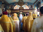 По окончании Божественной литургии были совершен молебен с освящением новосооруженной колокольни и крестным вокруг храма-именинника, после чего Высокопреосвященнейший митрополит Иларион и епископ Кливлендский Петр обменялись приветствиями.