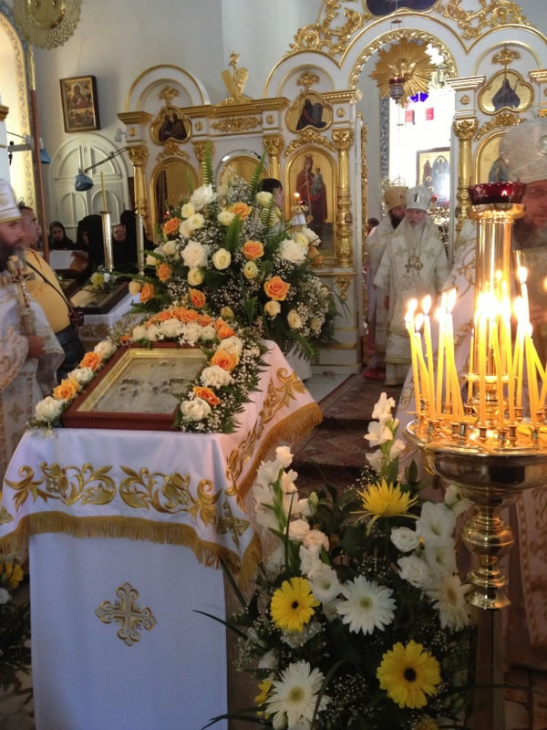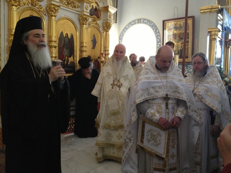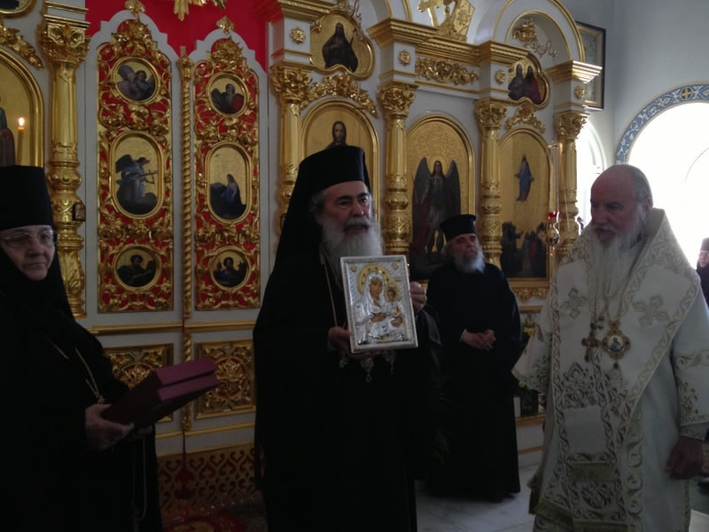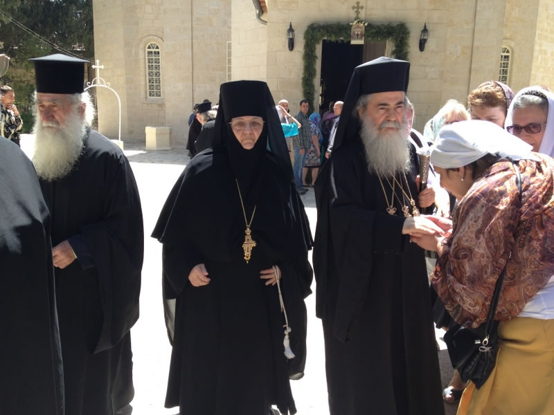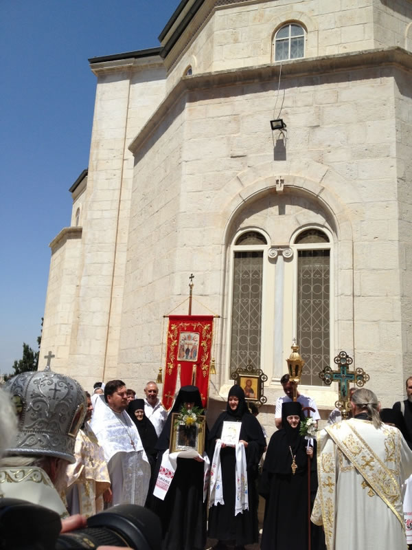 Во время Литургии монастырь посетил Патриарх Феофил, который до этого по традиции побывал в часовне Вознесения. Он поздравил молящихся с праздником, а игумении Моисее подарил икону Божией Матери "Иерусалимская". На торжествах присутствовала игумения Елисавета с сестрами соседнего монастыря св. Марии Магдалины. После Литургии состоялся крестный ход, в котором смогли принять участие все – даже те, кто не поместился в храме из-за многолюдства.