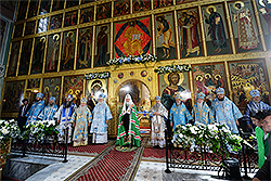 Богослужебные песнопения исполнил сводный архиерейский мужской хор Татарстанской митрополии (регент - Д.А. Рогов).