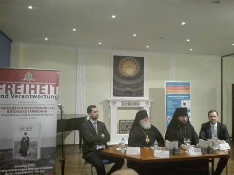 От лица русской дипломатической миссии в Берлине участников круглого стола приветствовал Чрезвычайный и Полномочный Посол Российской Федерации в ФРГ Владимир Гринин. Он отметил, что сотрудничество с Русской Православной Церковью необходимо развивать для придания нравственного измерения международной политике и консолидации русского мира в Германии. Владимир Михайлович приветствовал увеличение числа приходов в Берлинской епархии, назвав Церковь «важным фактором духовного благополучия многомиллионной русской диаспоры». Посол подчеркнул необходимость развития на базе приходов воскресных школ, иных детских воспитательных и образовательных учреждений, групп социальной поддержки, школ русского языка.