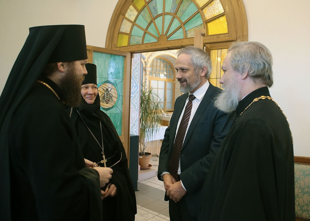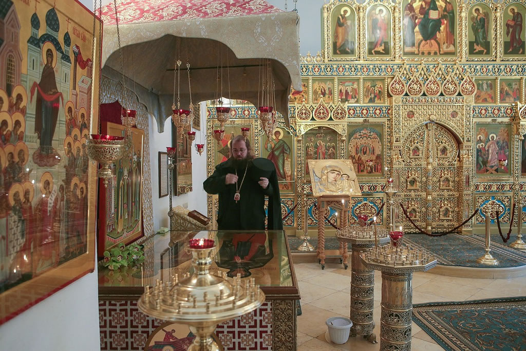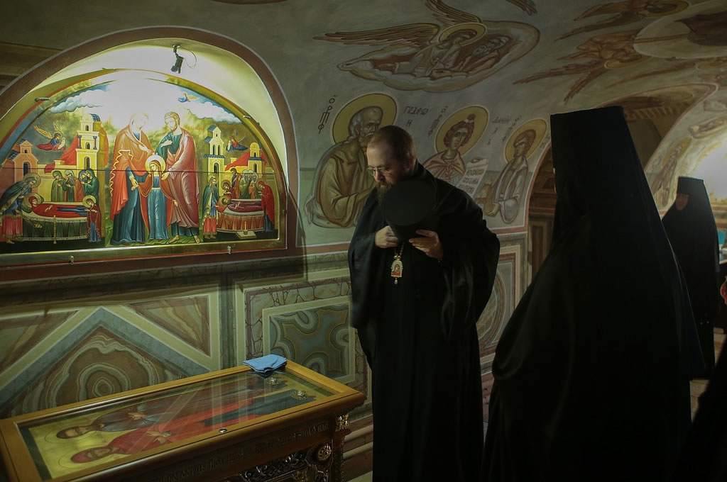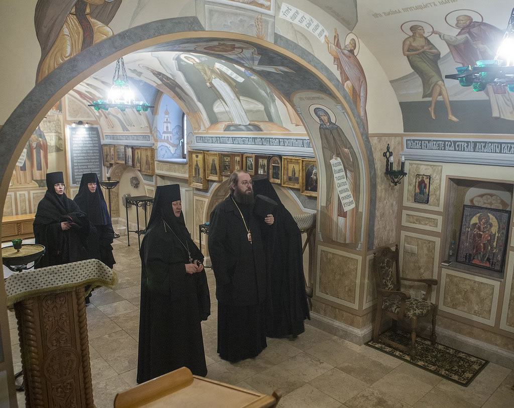 После службы матушка игумения предложила Владыке небольшую экскурсию по храмам и музею истории монастыря, а затем была устроена общая поминальная трапеза.