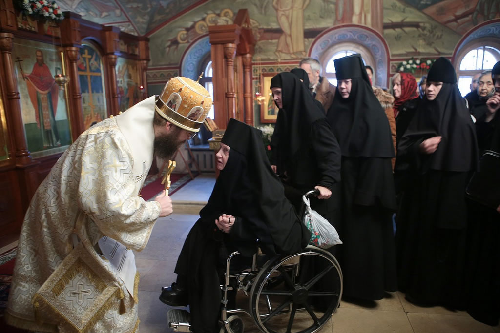 Этот день особенно памятен для насельниц Зачатьевского монастыря, так как сегодня исполнилось 95 лет со дня рождения приснопоминаемой монахини Георгии (Л.В. Каледа) — дочери священномученика Владимира Амбарцумова и родительницы игумении Иулиании, настоятельницы обители. Во время богослужения храм был полон молящимися, большинство из которых пришли в этот день в обитель ради сугубого молитвенного поминовения монахини Георгии. Совершение Божественной литургии архиерейским чином было особенным свидетельством неразрывной связи Церкви Небесной и Церкви земной и исполнило сердца богомольцев духовной радости. По окончании Литургии Преосвященный епископ Ириней обратился к молящимся с проникновенным словом о значении подвига христианской жизни и о жизни в Церкви как предначатии жизни в Царстве Небесном, каковой и была жизнь приснопоминаемой монахини Георгии.