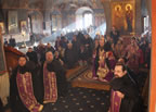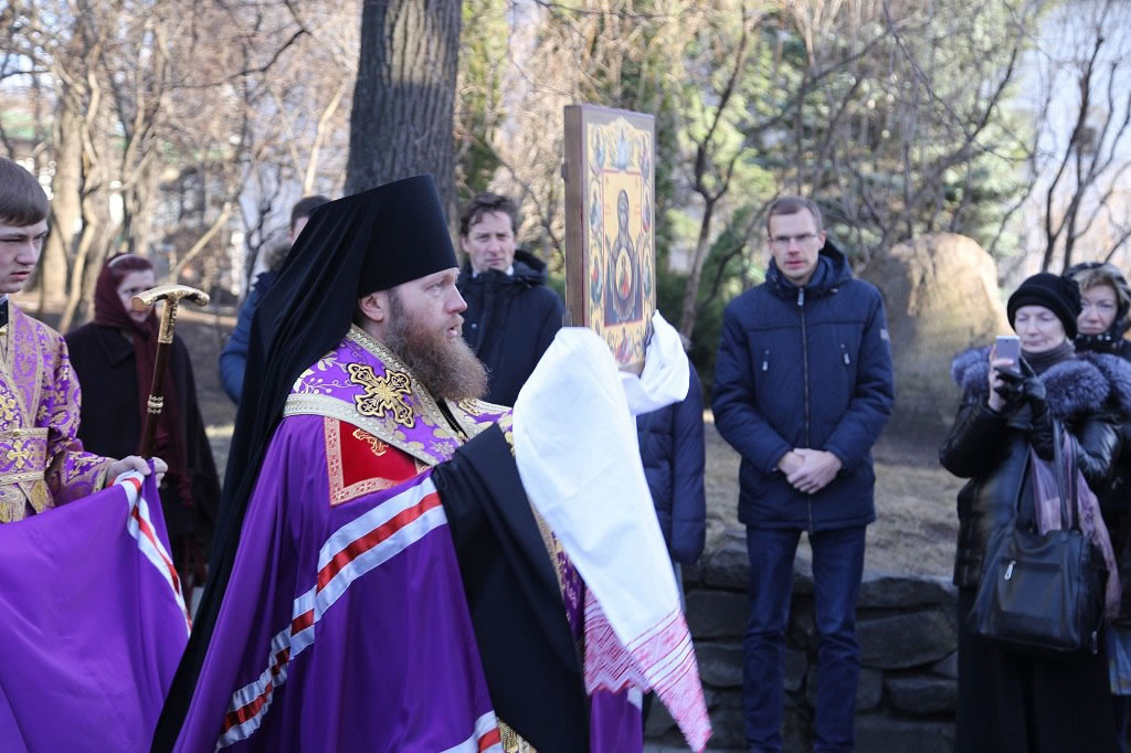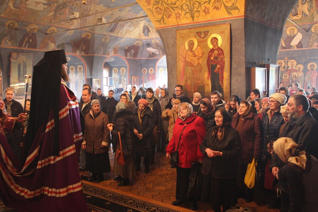 25 марта святыню встретили наместник обители епископ Воскресенский Савва с братией и многочисленные прихожане.