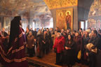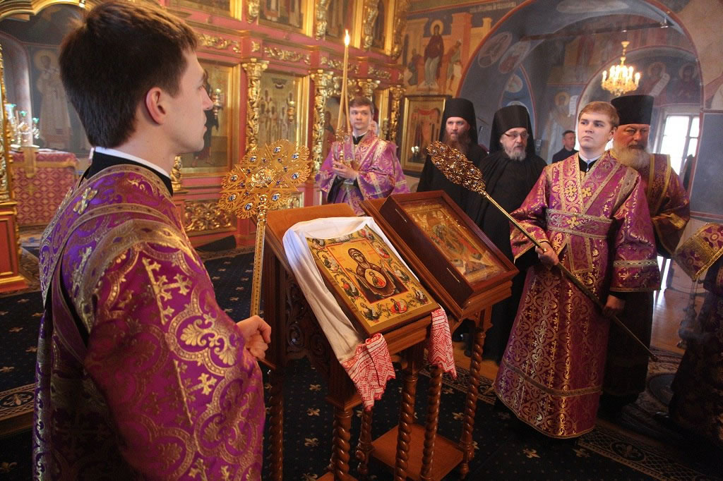После торжественной встречи икону принесли в Покровский храм монастыря, где был отслужен молебен. Верующие коленнопреклоненно пропели молитву "Царице моя преблагая". Далее епископ Савва обратился к присутствующим со словом по случаю исторического для обители события. Наместник также сообщил, что 26 марта по завершении воскресной Божественной литургии образ перенесут в Знаменскую церковь, где он ежедневно будет доступен для всех желающих поклониться святыне.