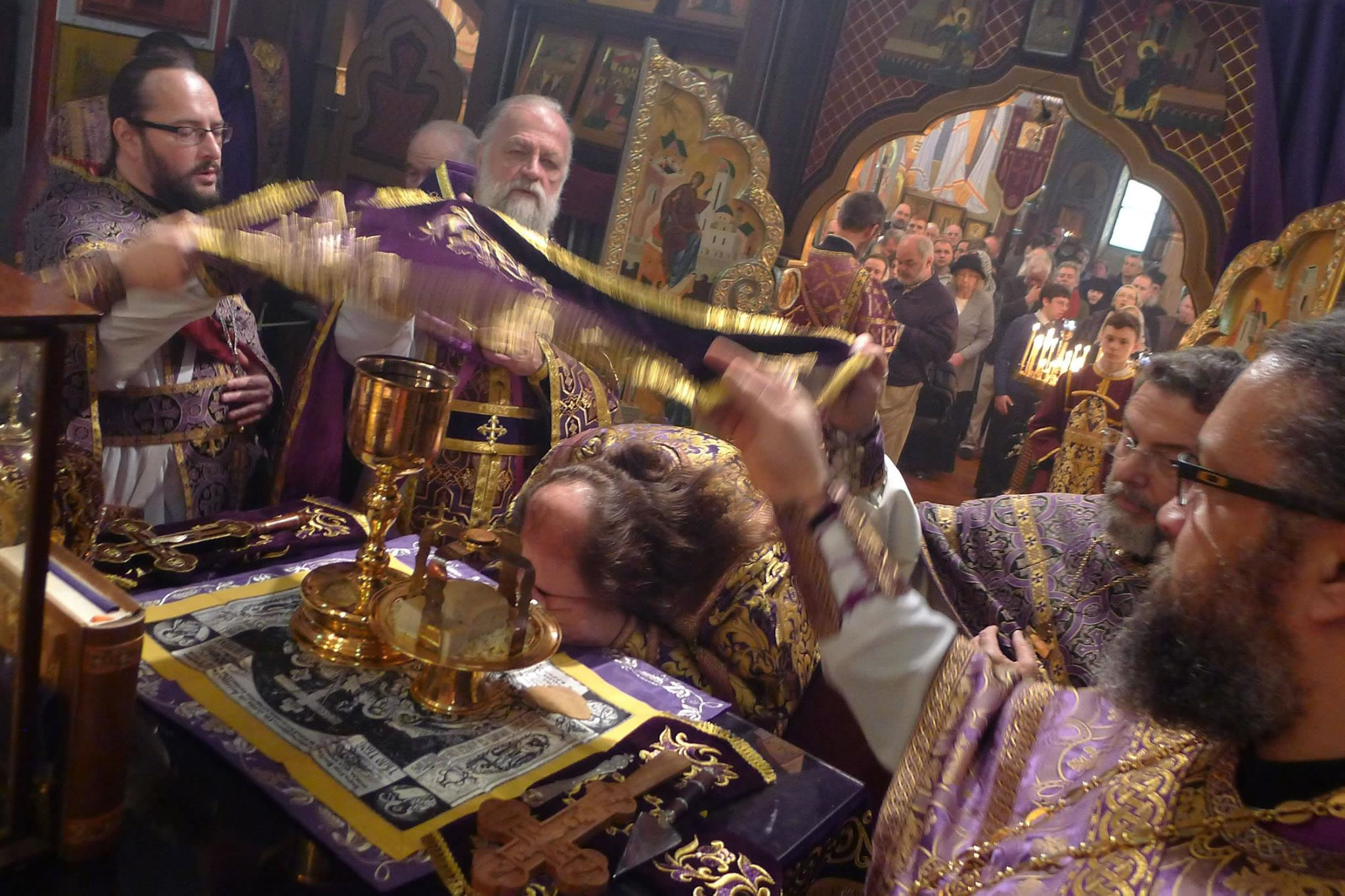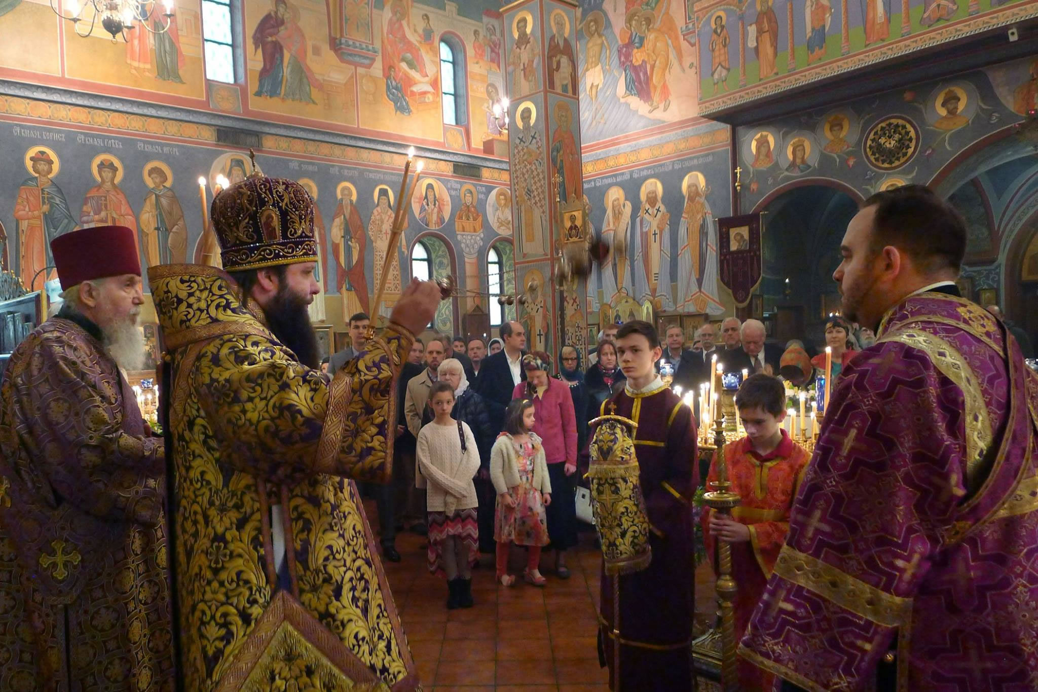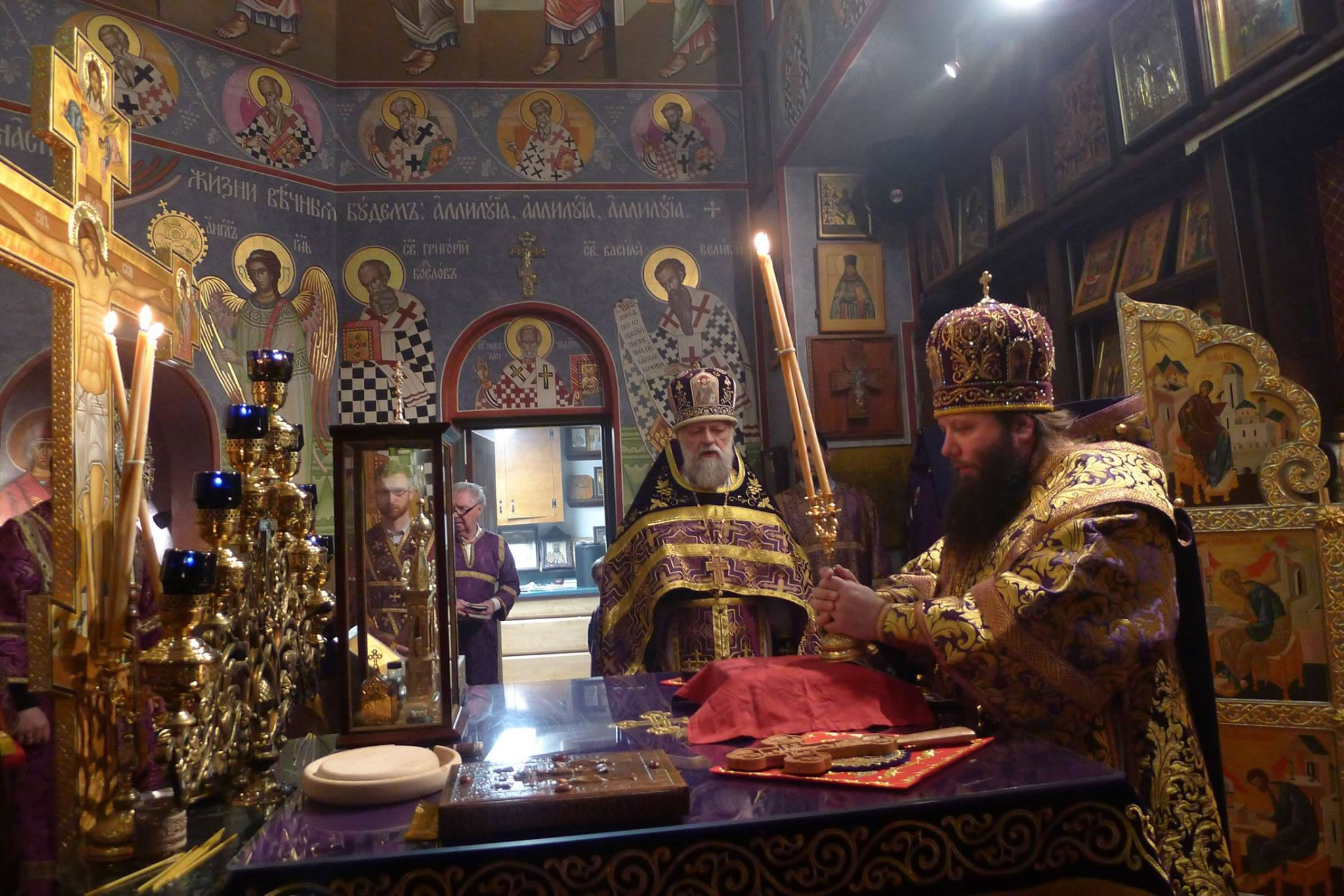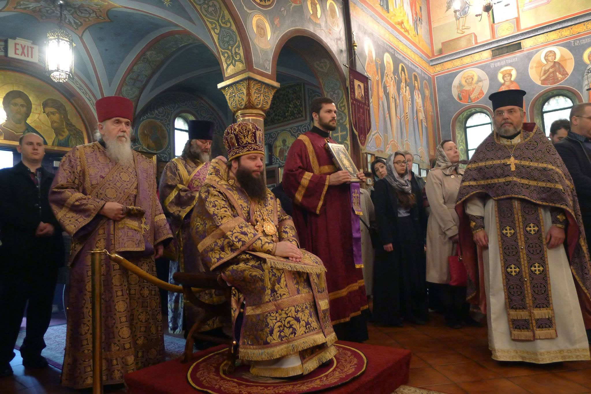 Фоторепортаж о служении епископа Манхэттенского Николая в Неделю 4-ую Великого поста в Иоанно-Предтеченском соборе в столице США