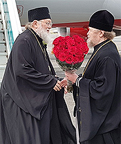 19 июля паломническая группа прибыла в столицу Крыма. В Международном аэропорту « Симферополь» Первоиерарха Зарубежной Православной Церкви встречали: Высокопреосвященнейший Лазарь, Митрополит Симферопольский и Крымский Лазарь, секретарь Симферопольской и Крымской епархии, настоятель Петро-Павловского кафедрального собора, протоиерей Александр Якушечкин, руководитель службы протокола, настоятель храмов святого великомученика Димитрия Солунского и святой равноапостольной Марии Магдалины протоиерей Иосиф Фарковец, духовенство Симферопольских благочиний.