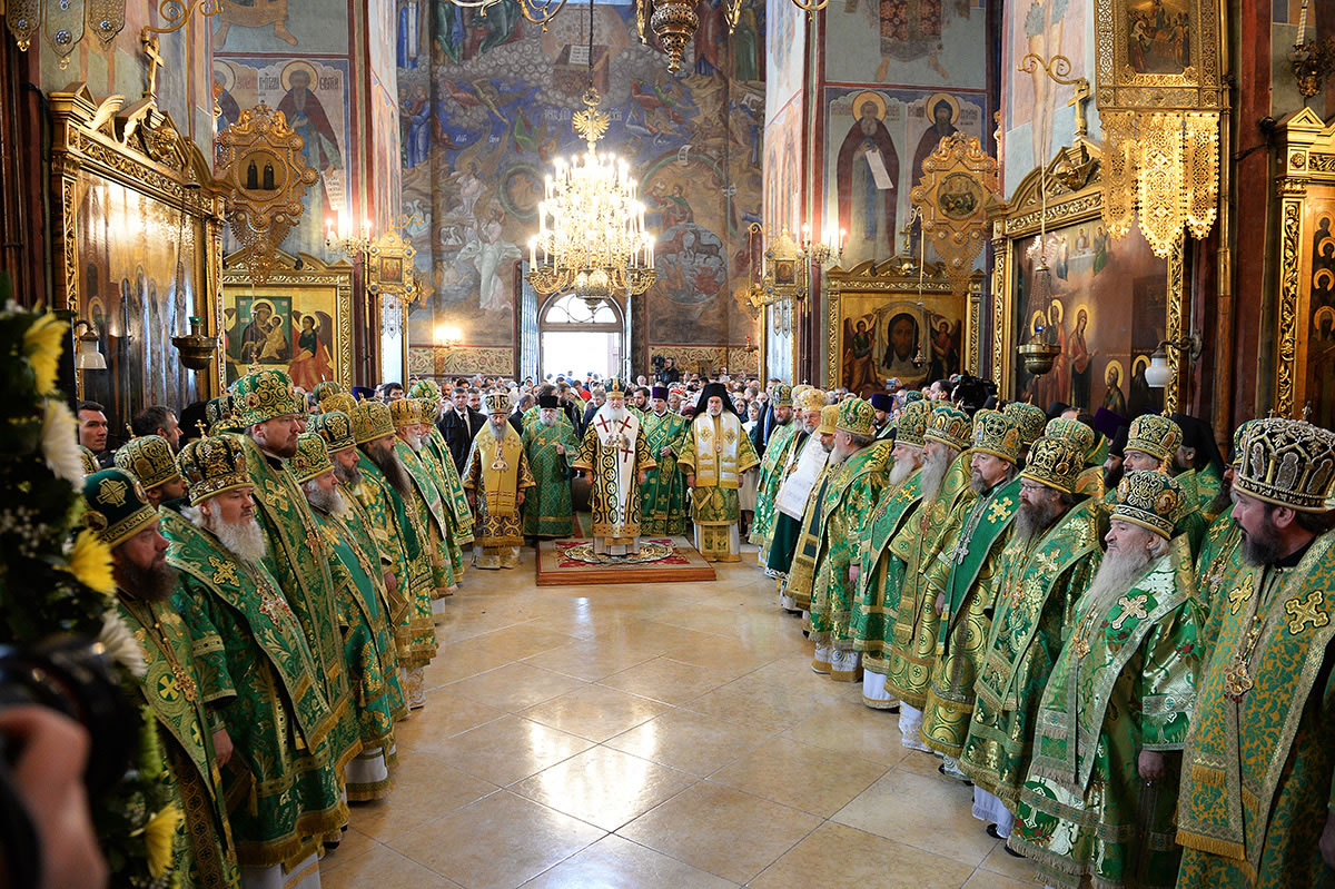 По завершении молебна Святейший Патриарх Кирилл с балкона Патриарших покоев обратился к участникам торжеств — архиереям, духовенству, монашествующим и мирянам — с Первосвятительским словом.