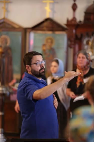 Протодиакон Александр Котляров провел очень актуальную беседу о том, как взаимодействуют на службе хор и алтарь, обратил внимание на литургическое значение каждого песнопения и что сейчас, в этот момент происходит. Ведь пение в литургии призвано только обрамлять священнодействие, не перетягивать на себя главную роль. И поэтому паузы в службе напрямую связаны с тем что происходит в алтаре и требуют тонкого понимания и внимательного отношения от клира, чтобы быть в идеальной синхронности и созвучии друг с другом.