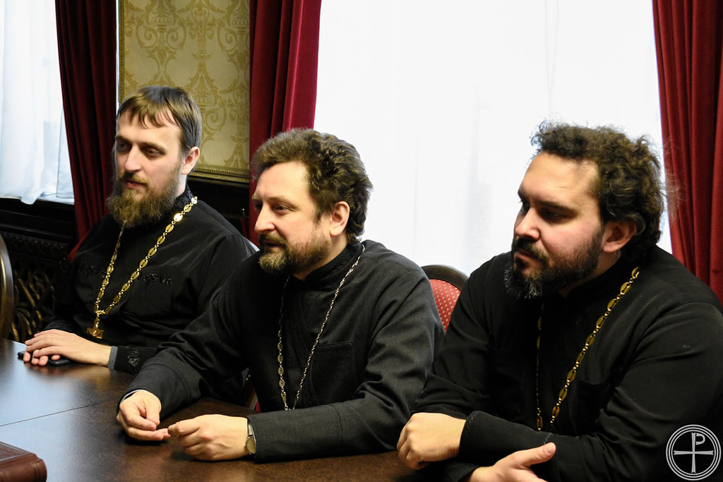 В рамках встречи отей Андрей поделился опытом Русской Зарубежной Церкви по организации работы с молодым поколением. В свою очередь о. Сергий рассказал об организации научной, учебной и бытовой жизни академии.