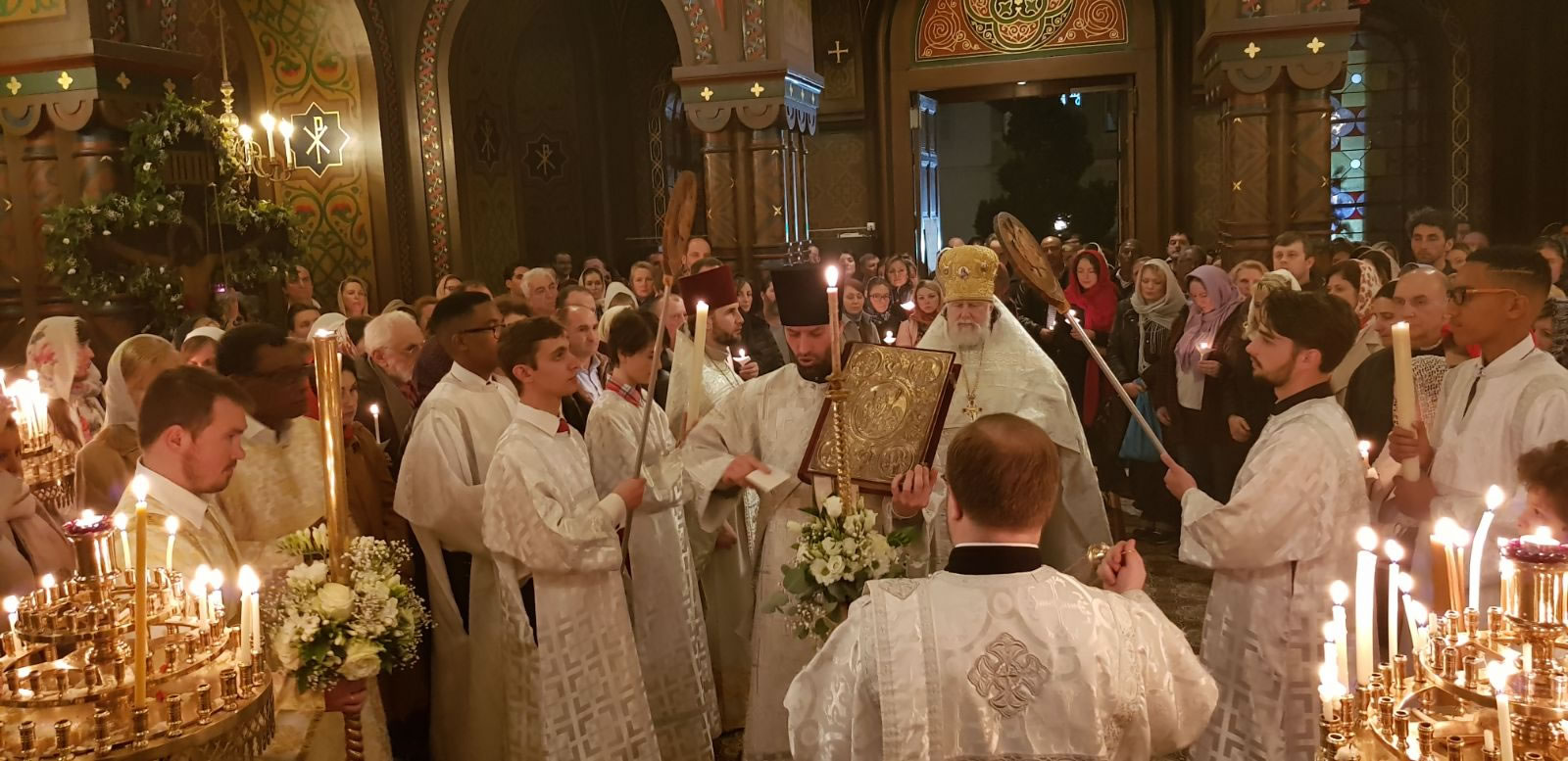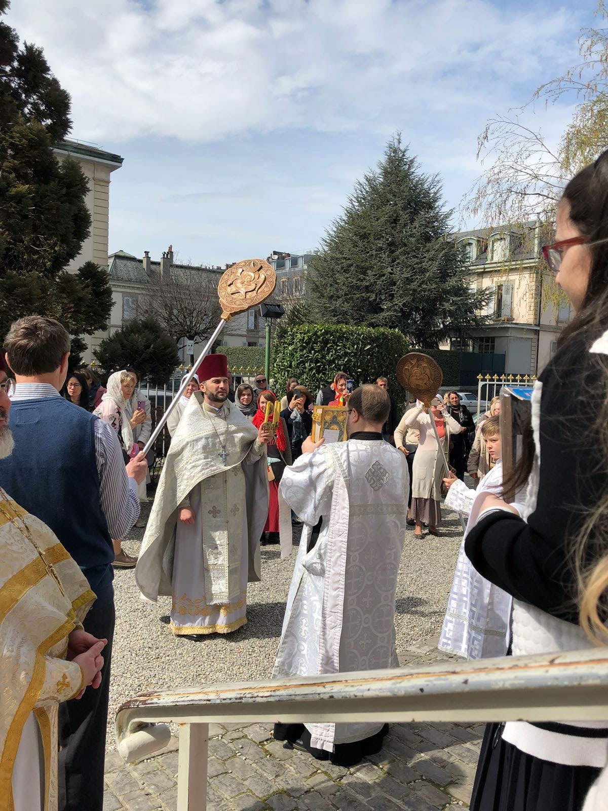 В Великую Субботу, 7 апреля, Пасхальной полуночницей в 23:30 началось торжественное пасхальное богослужение в кафедральном соборе Женевы. Крестный ход с перезвоном колоколов известил Женеву о воскресшем Христе Спасителе. Заутреню и Божественную Литургию возглавил протоиерей Павел Цветков в сослужении протоиерея Емилиана Починок и диаконов кафедрального собора. Торжественное «Христос Воскресе!» раздавалось более чем на десяти языках в многонациональном женевском приходе. Пасхальные песнопения искусно выполнял хор под управлением регентов Ларисы Попович и Матфея Малинина. После Божественной Литургии было оглашено послание Святейшего Патриарха Кирилла. Вечером в воскресный день отслужена Пасхальная Вечерня. Несколько тысяч прихожан и гостей города посетило собор в первый день Светлого Христова Воскресения.