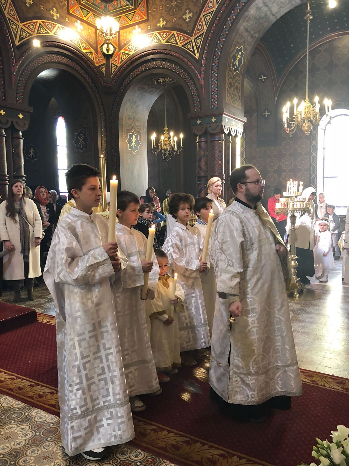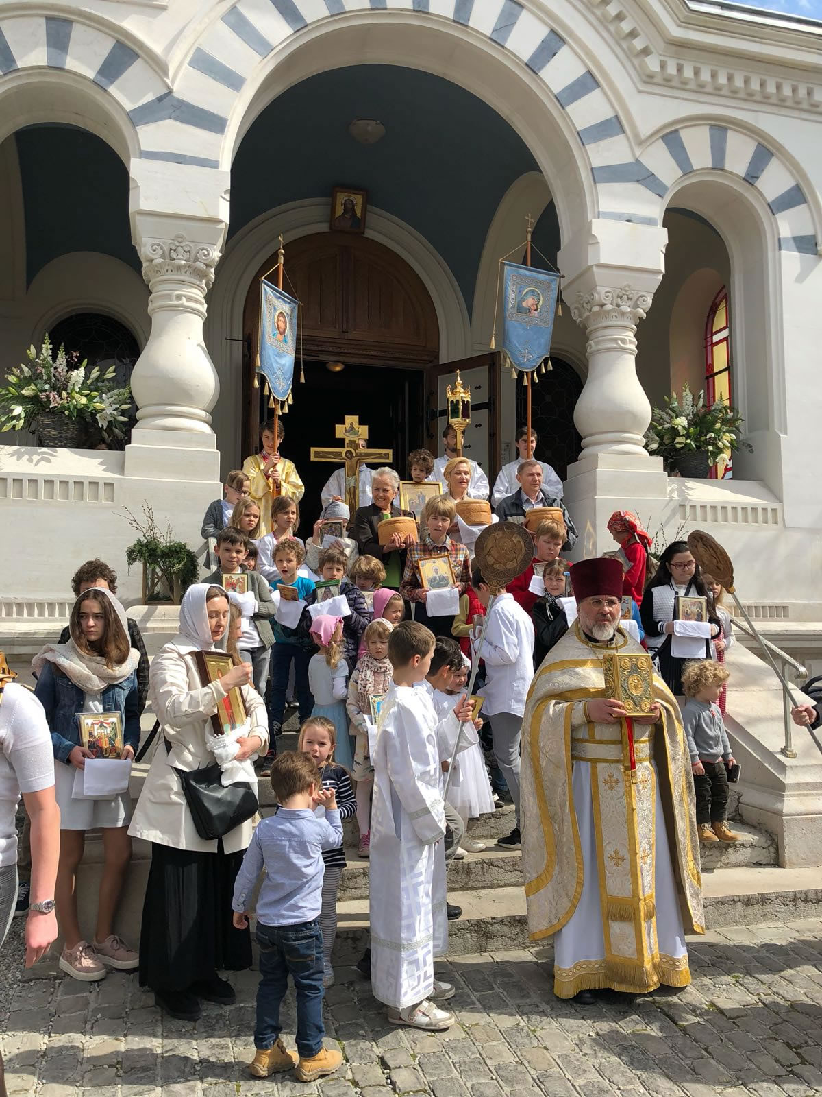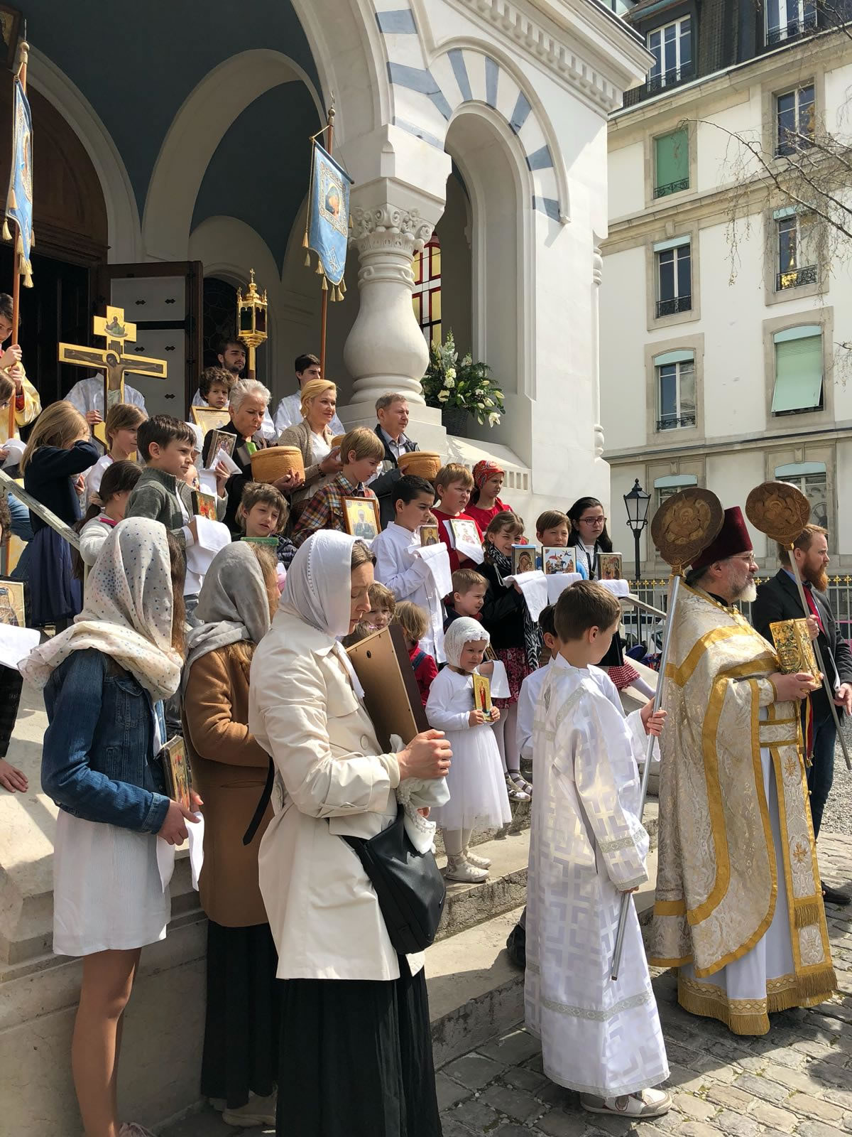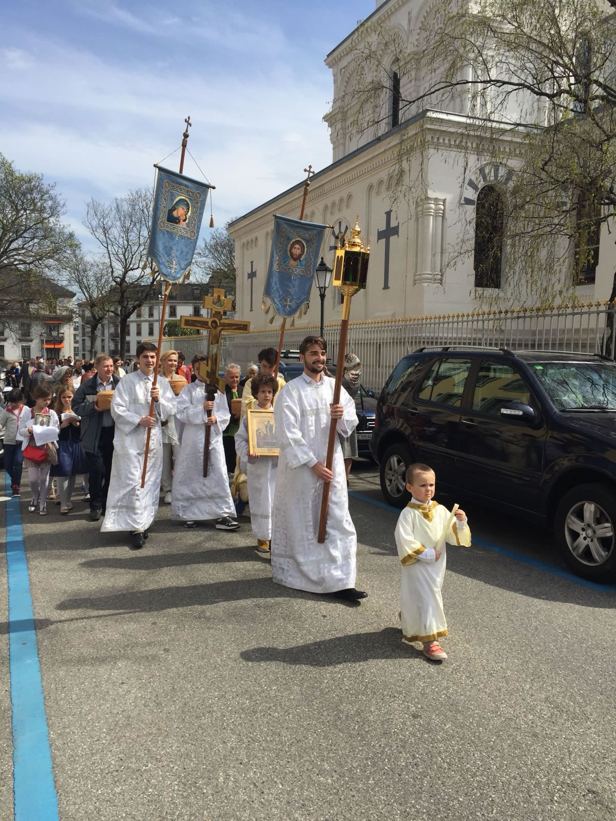 Традиционно, после Божественной Литургии на второй день Пасхальных торжеств в кафедральном соборе города Женевы собирается большое количество детей и подростков для участия в общей молитве, приобщении Святых Христовых Таин и участия в ежегодном детском Крестном ходе, который проходит после Божественной Литургии. В этом году в храм также пришло множество детей, большинство из которых приступило к Святому Причастию. Значительное количество юных прихожан являются активными учениками воскресной школы при кафедральном храме и принимают живое участие в церковной жизни. По завершении крестного хода каждый маленький участник получил из рук протоиерея Емилиана Починок сладкий подарок и благословение на добрые дела.