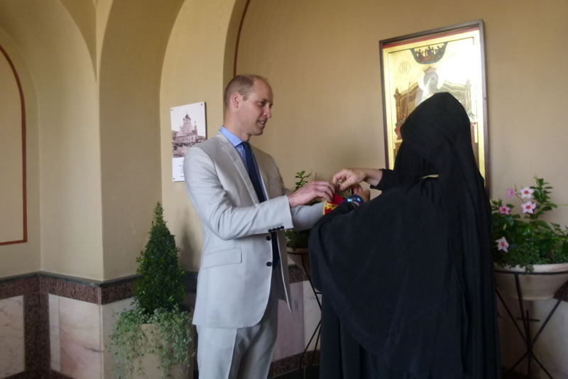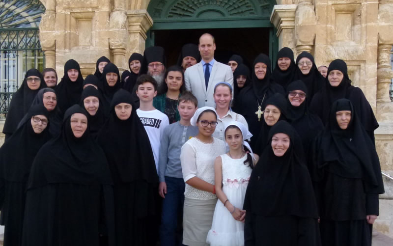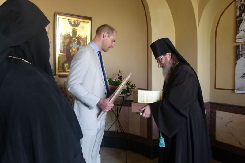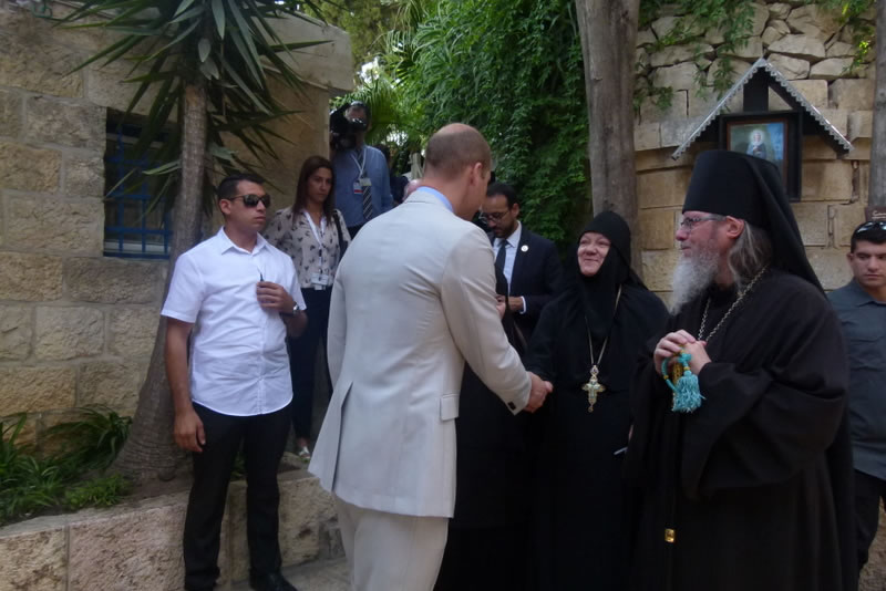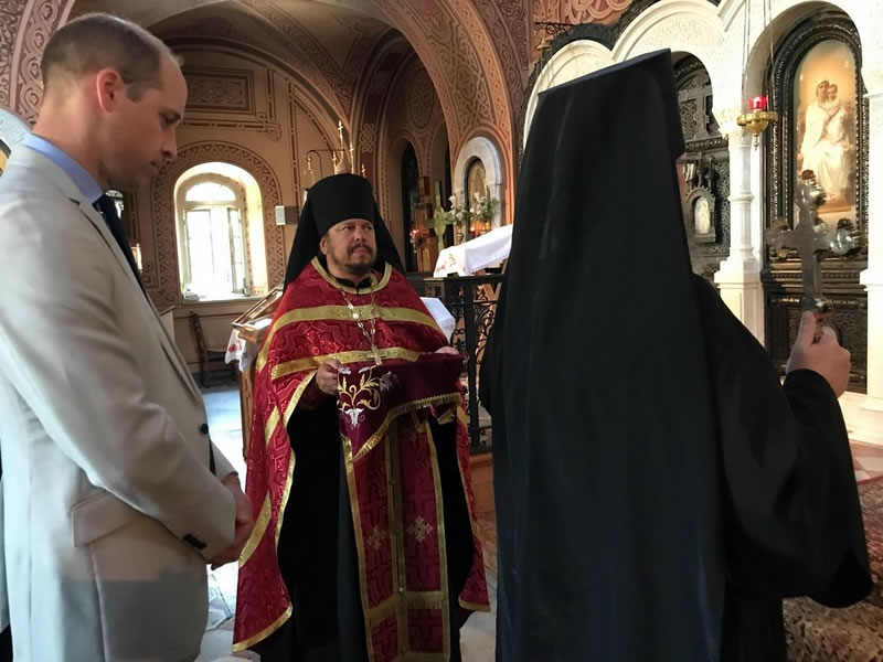 В четверг, 28 июня, Британский принц Уильям посетил русский женский монастырь равноапостольной Марии Магдалины в Гефсимании, где был встречен архимандритом Романом (Красовским), Начальником Духовной Миссии Русской Зарубежной Церкви в Иерусалиме, и настоятельницей обители игуменией Елизаветой с сестрами. Проследовав в соборный «Царский» храм обители, принц Уильям поклонился священной раке с мощами преподобномученицы великой княгини Елизаветы, мученически убиенной 100 лет тому назад в Алапаевске и нашедшей здесь место упокоения. Архимандрит Роман совершил краткий молебен у святыни, совершив поминовение Государыни Королевы Елизаветы и всего Королевского Дома. Молебен завершился многолетствием Государыне Королеве Елизавете, принцу Уильяму и всему Королевскому Дому.